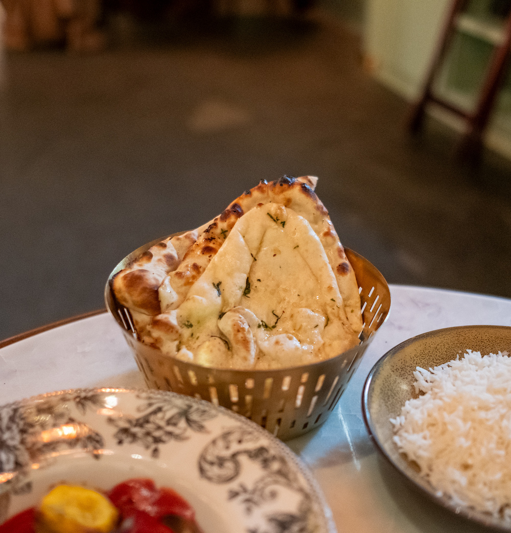Dessert was delicious but impractical—the kulfi slid off the plate, and we had to request extra spoons. Maybe better served in a bowl?