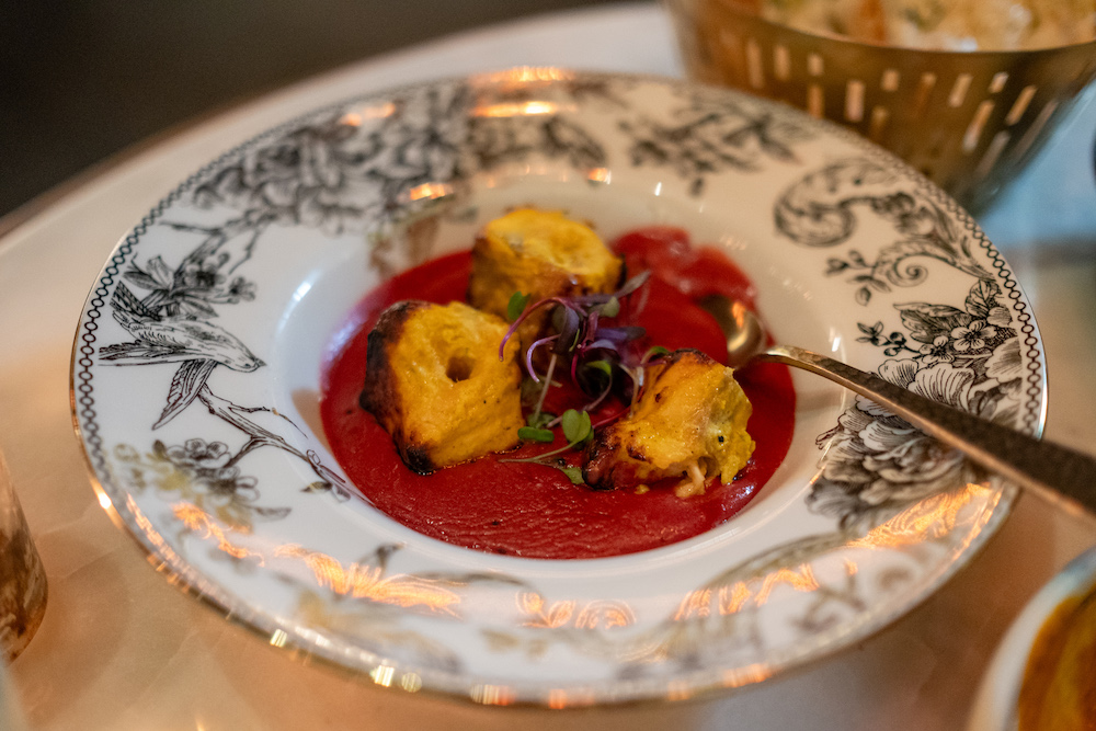 For mains, we had the Chicken Amrit (butter chicken) and Kokum Salmon, a tandoor-cooked dish with a vibrant red beet hue and surprising South Indian flavors.